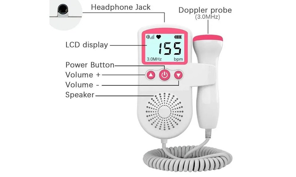 Fetal Doppler is a hand-held ultrasound device that uses sound waves to listen to a fetal heartbeat. This device brings you a clear sound of your baby’s heartbeat and the probe must be in contact with your skin via using gel, oil or water to obtained an accurate fetal heart rate.