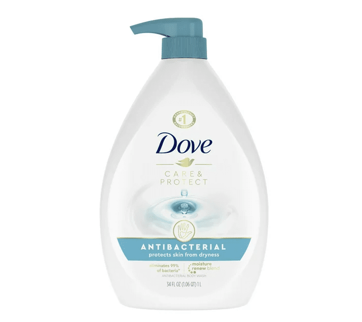 Dove Care & Protect Antibacterial Liquid Body Wash;  34 oz Dove Care & Protect Antibacterial Liquid Body Wash;  34 oz Dove Care & Protect Antibacterial Liquid Body Wash;  34 oz