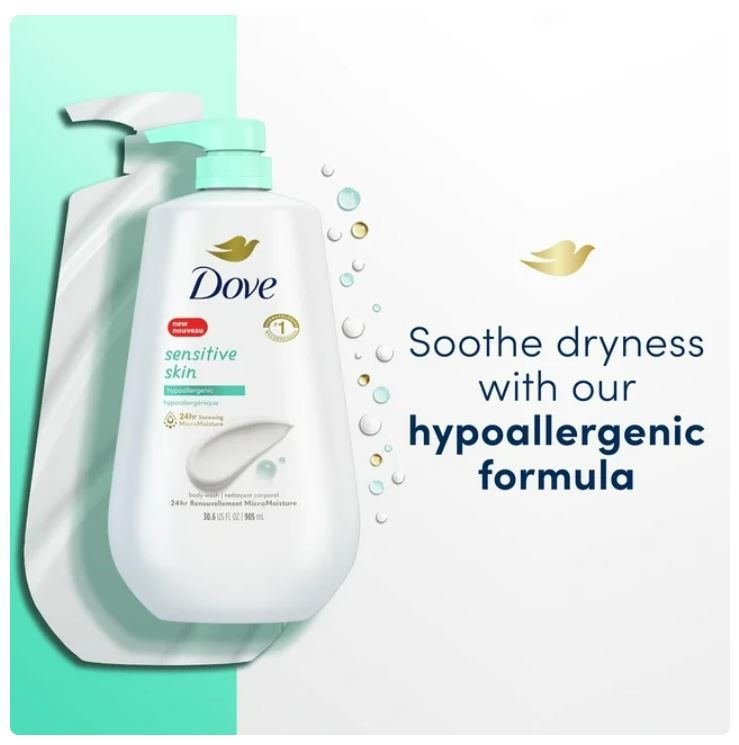 Dove Sensitive Skin Long Lasting Gentle Hypoallergenic Body Wash, 30.6 fl oz Dove Sensitive Skin Long Lasting Gentle Hypoallergenic Body Wash, 30.6 fl oz Dove Sensitive Skin Long Lasting Gentle Hypoallergenic Body Wash, 30.6 fl oz