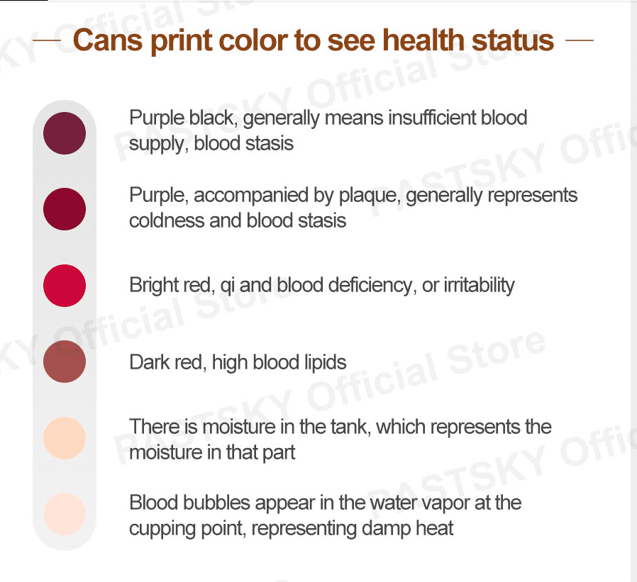 About the method of scraping:Please adjust the suction to 1st gear, be sure to match with essential oils, and the massager needs to move faster when scraping, otherwise it will suck in same place.About the method of cupping:Apply essential oils before cupping, adjust the suction to suitable for you,and stay on each part for no more than 10 minutes. you can turn off the suction by pressing the power-off button or the one-key pressure release button, take the can easily.Note:the marks left after scraping or cupping are normal and usually disappear in 5 to 7 days.