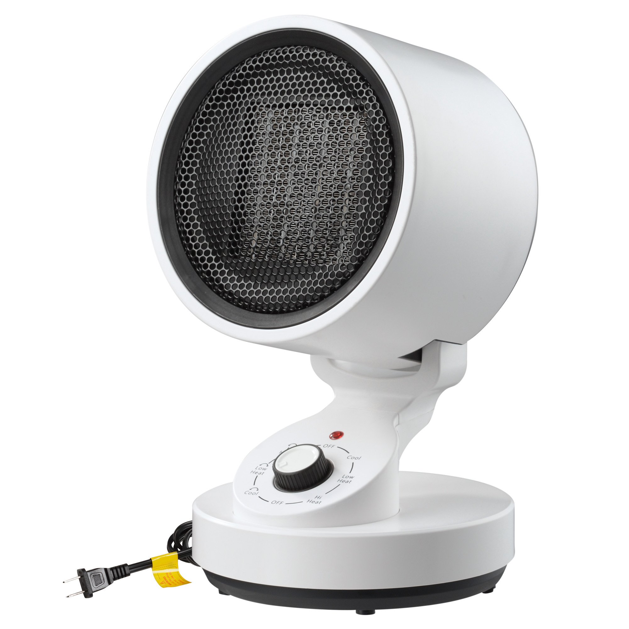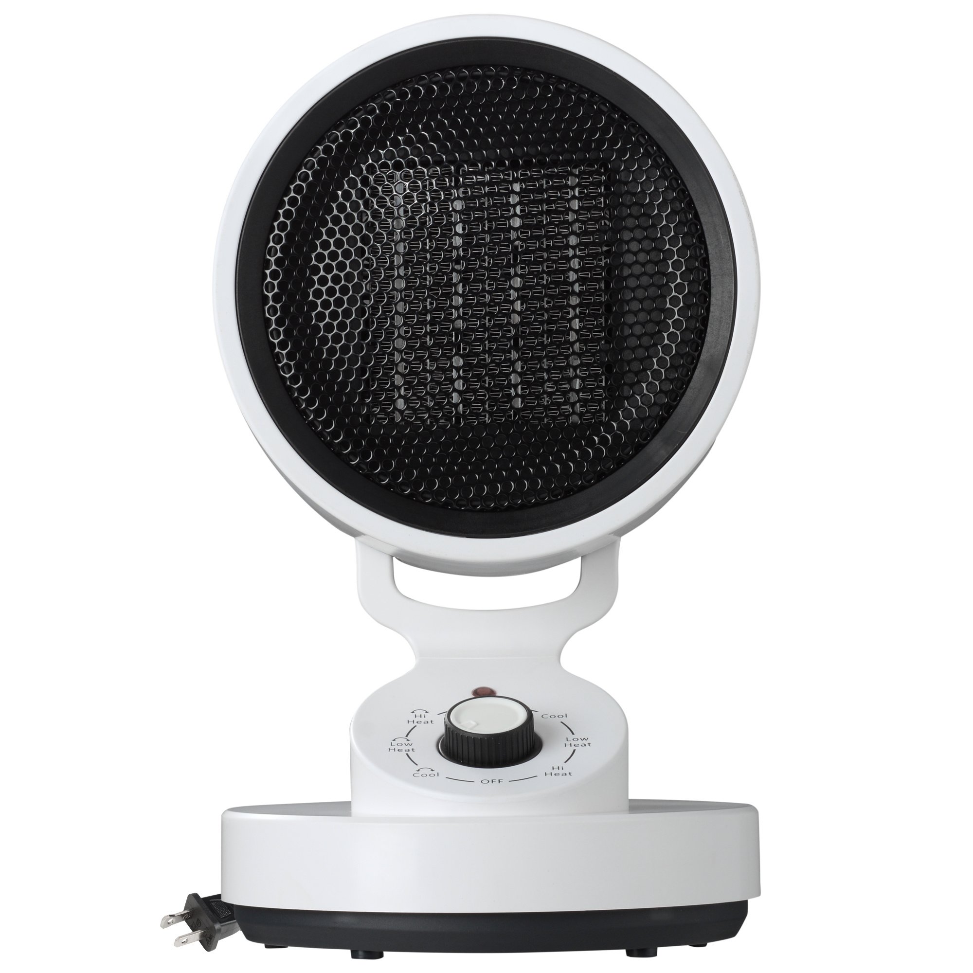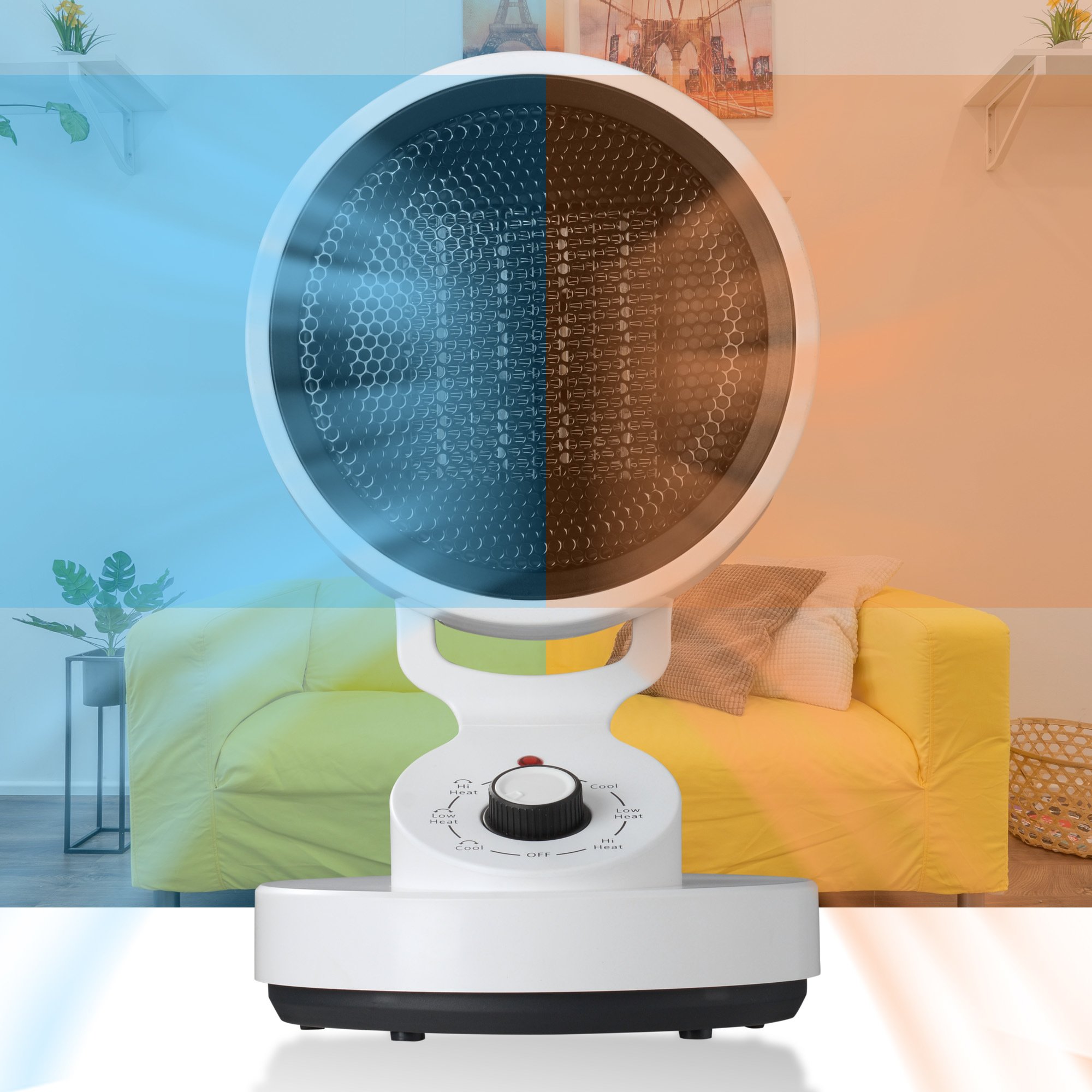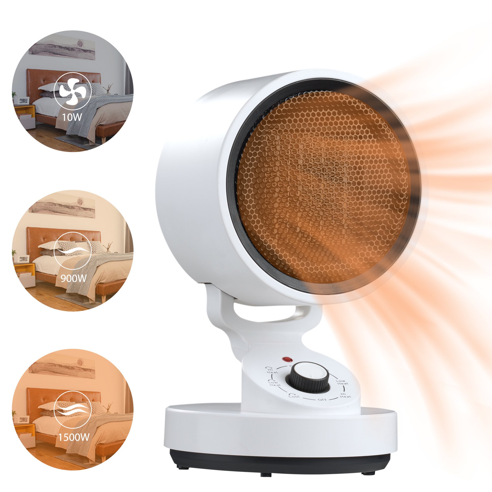 Compact Warm & Cool Fan - PTC Oscillating Ceramic Heater Fan features warm and cool wind; warm you in winter and cool you in summer; accompanying with you for all year round; 13.5"x8"x8" Compact size & lightweight design fit in narrow space and easily put on floor or desk