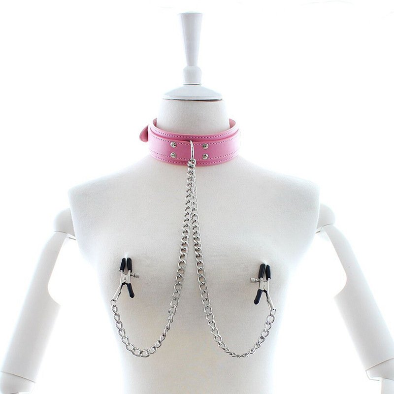Home > Faux Leather Choker Collar With Nipple Breast Clamp Clip Chain Couple SM Sex Toys For Woman Sex Tools For Couples Adult Games