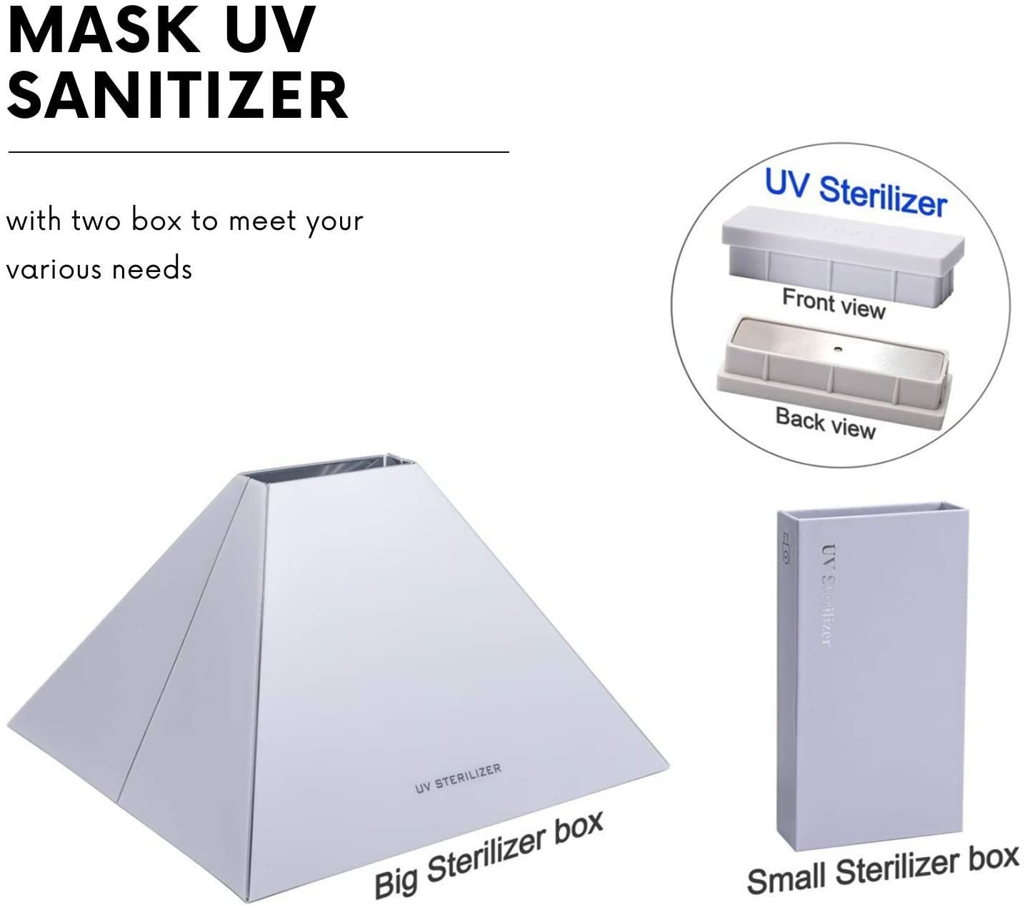 2.Compact and foldable, convenient for you to carry out anytime and anywhere. Improve your living environment and keep personal items clean and health forever. With two specifications uv box, plug and play without any security risks. Timer function, UVC LED will automatically turn off after 3 minutes.