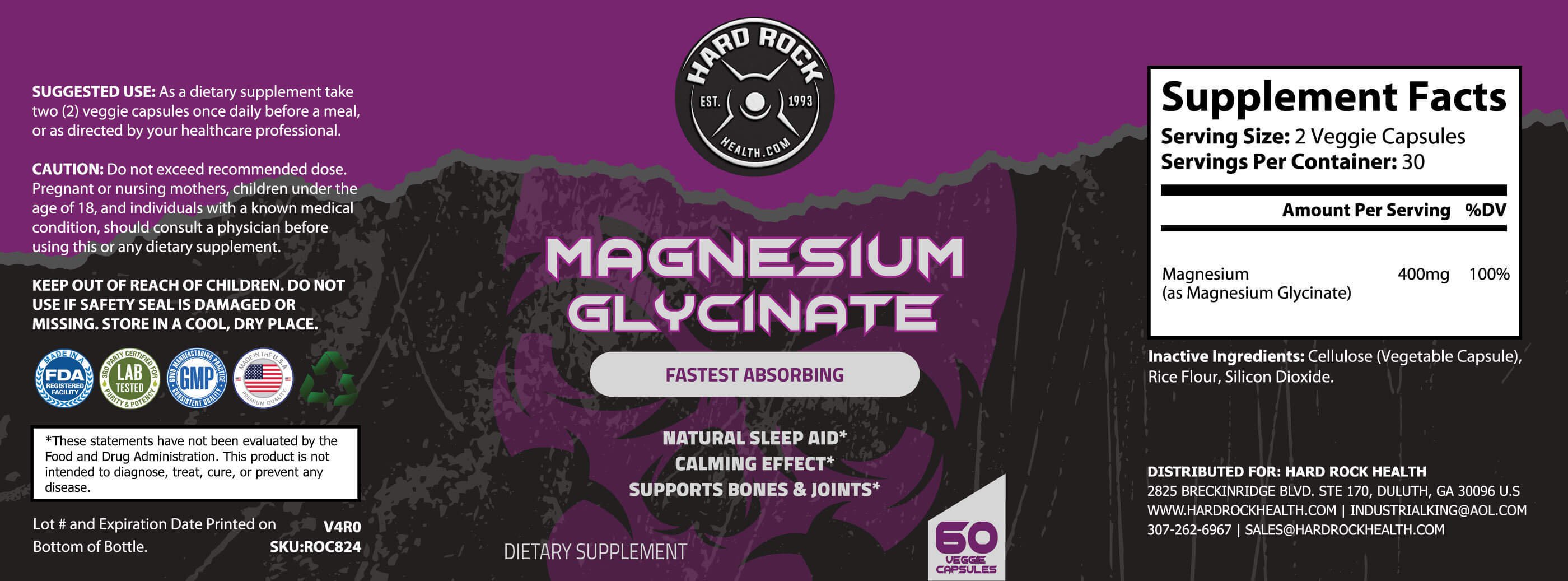 Among the processes that require magnesium are fat and protein production, as well as glucose metabolism. Magnesium status is also important for the regulation of calcium balance through its effects on the parathyroid gland.Support for the Nervous SystemSupports Highly Absorbable Form Muscle, Nerve, and Heart FunctionsNon-GMOOur GMP Quality Assured Dietary Supplement Vegetarian/Vegan Minerals are consumed all over the USAWarningOur magnesium Glycinate- Fast Absorption is just for adults. If you're pregnant or nursing, taking medication, or have a medical condition, talk to your doctor. Keep out of children's reach.After opening, store in a cool, dry location.