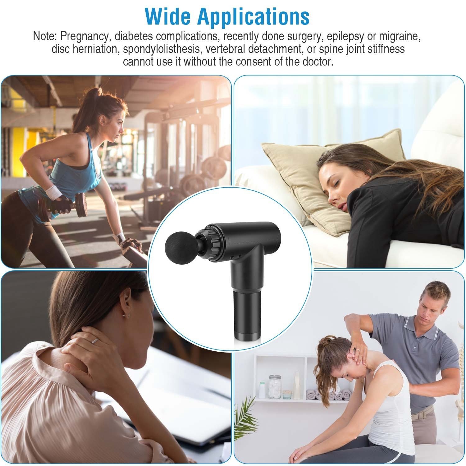 *Deep Tissue Massage*:Powerful gun massager with 6 level massage intensities that produces up to 3300 rpm blaster to work on different body tissues and muscles. It is a perfect tool to therapy muscle or joints issues,muscle pain relief and relaxing which is necessary to improve your health.
